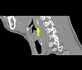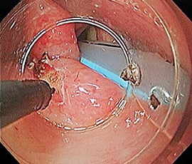 [咽頭腔外魚骨異物] 手術:内視鏡的粘膜下層剥離術(異物除去)