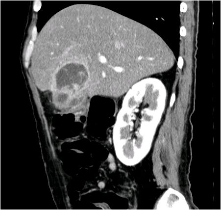血液検査にて炎症反応の上昇を認め、精査の結果、急性胆嚢炎と診断。胆嚢摘出術(結腸切除術併施)を施行した。病理結果は黄色肉芽腫胆嚢炎であった。