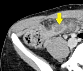 急性腹症のため救急受診。精査の結果、急性虫垂炎および限局性腹膜炎と診断。緊急手術(腹腔鏡下虫垂切除術)を施行した。病理結果は急性虫垂炎であった。