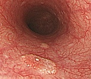 食道がんは扁平上皮がんと腺がんの2つのがんがありますが、わが国の食道がんのほとんどは扁平上皮がんです。一方、腺がんは逆流性食道炎(胃酸が食道に逆流する)を背景として起こることが多く、欧米では食道がんの半数以上を占めています。 食道がん(扁平上皮がん)は60歳以上に多く、危険因子は主に飲酒と喫煙です。近年、お酒を飲むと顔が赤くなる体質の方(アルコールの代謝物質であるアセトアルデヒドを分解する酵素が弱い方)が飲酒を続けると、食道がんのリスクが高いことが明らかになっています。