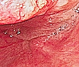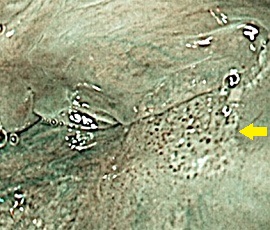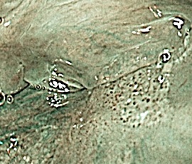 NBI(Narrow Band Imaging:狭帯域光観察)とは、通常光観察では見えにくい小さな病変を特殊な青い光で見えやすくします。早期がん等の病変の発見率向上のため、注目を集めている内視鏡診断技術です。