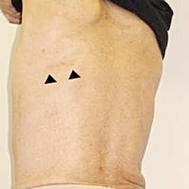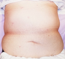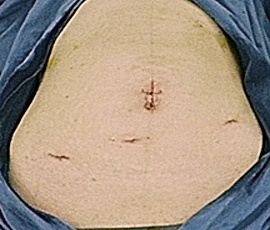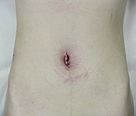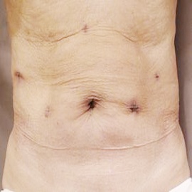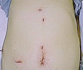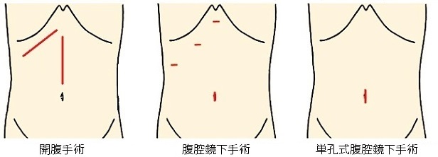従来法と比較して、腹部には2〜3個の5mm程度の小さな穴をあけて手術施行しますが、それらは手術後、時間が経てばほとんど目立たなくなります。