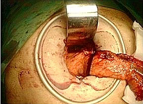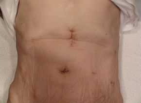 対する子宮全摘手術は下腹部正中を20cmほど切開する開腹手術(従来法)でしたが、