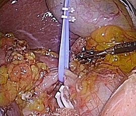 胆管の形状や胆管内の結石を確認します。続いて総胆管結石の除去に移ります。胆管の