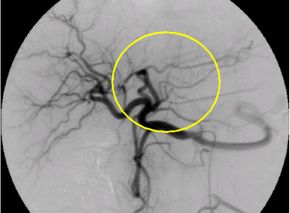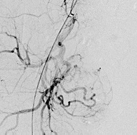 栄養する血管が同定できたら、マイクロカテーテル(通常ものよりさらに細いカテーテル